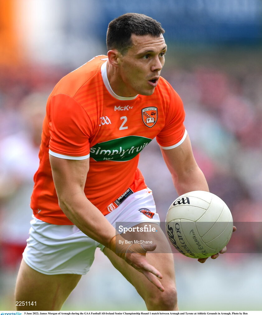 5 June 2022; James Morgan of Armagh during the GAA Football All-Ireland Senior Championship Round 1 match between Armagh and Tyrone at Athletic Grounds in Armagh. Photo by Ben McShane/Sportsfile