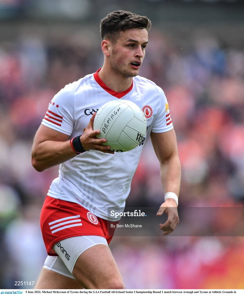 5 June 2022; Michael McKernan of Tyrone during the GAA Football All-Ireland Senior Championship Round 1 match between Armagh and Tyrone at Athletic Grounds in Armagh. Photo by Ben McShane/Sportsfile