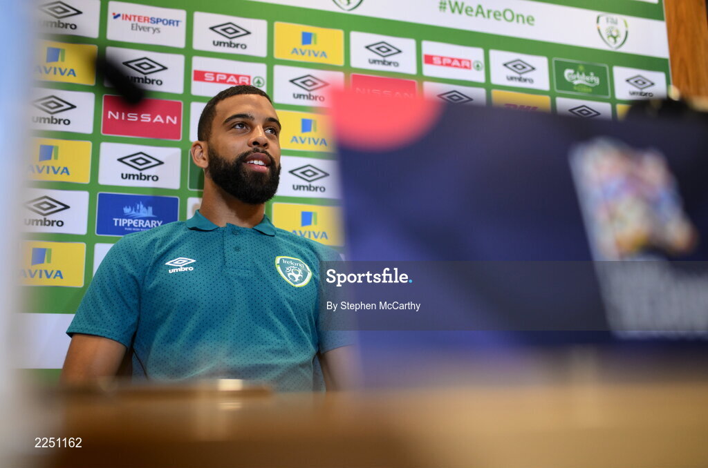 6 June 2022; CJ Hamilton during a Republic of Ireland press conference at FAI Headquarters in Abbotstown, Dublin. Photo by Stephen McCarthy/Sportsfile