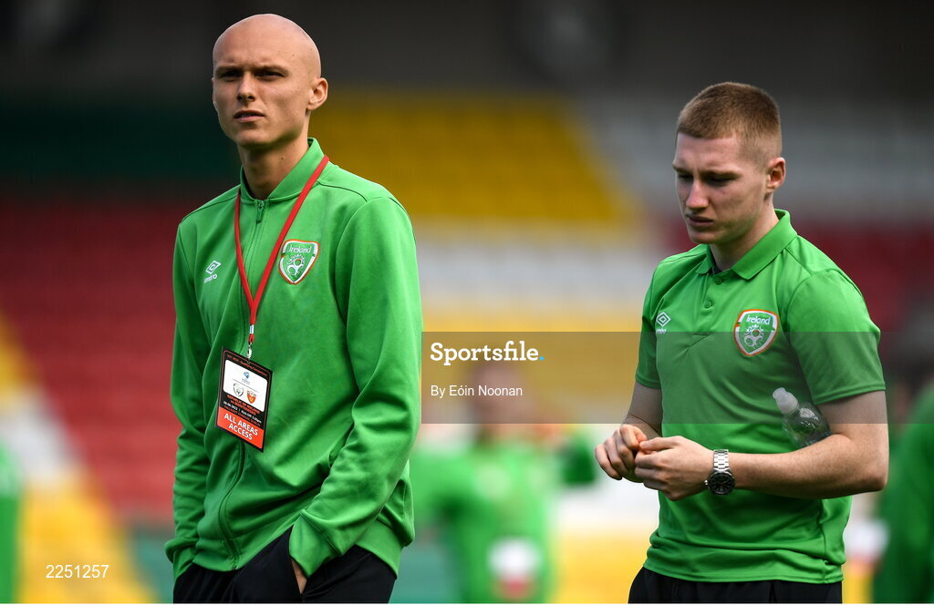 6 June 2022; Republic of Ireland players Will Smallbone, left, and Ross Tierney during the UEFA European U21 Championship qualifying group F match between Republic of Ireland and Montenegro at Tallaght Stadium in Dublin. Photo by Eóin Noonan/Sportsfile