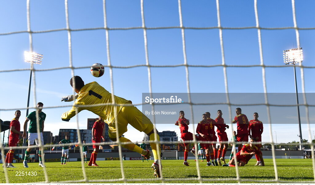 6 June 2022; Montenegro goalkeeper Nikola Ivezic saves a shot on goal by Will Smallbone of Republic of Ireland during the UEFA European U21 Championship qualifying group F match between Republic of Ireland and Montenegro at Tallaght Stadium in Dublin. Photo by Eóin Noonan/Sportsfile