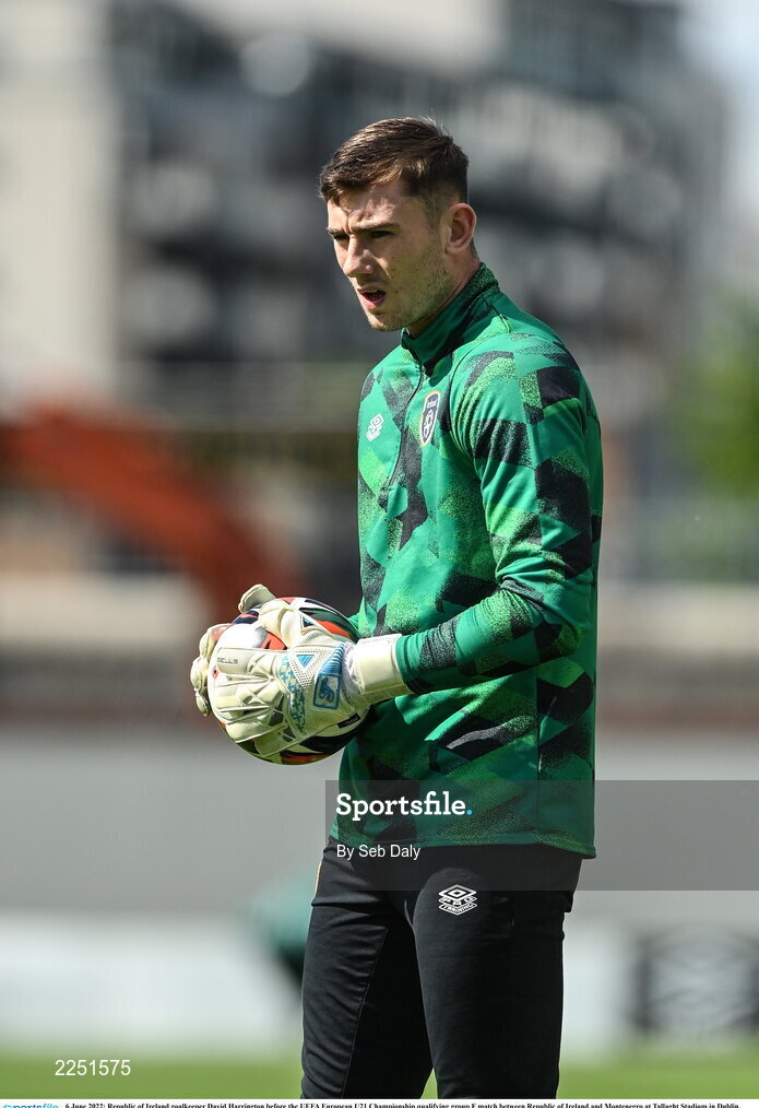 6 June 2022; Republic of Ireland goalkeeper David Harrington before the UEFA European U21 Championship qualifying group F match between Republic of Ireland and Montenegro at Tallaght Stadium in Dublin. Photo by Seb Daly/Sportsfile