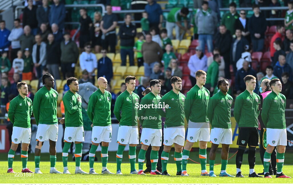 6 June 2022; The Republic of Ireland team before the UEFA European U21 Championship qualifying group F match between Republic of Ireland and Montenegro at Tallaght Stadium in Dublin. Photo by Seb Daly/Sportsfile