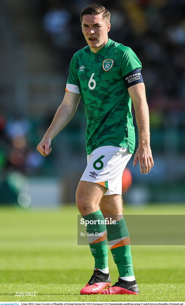 6 June 2022; Conor Coventry of Republic of Ireland during the UEFA European U21 Championship qualifying group F match between Republic of Ireland and Montenegro at Tallaght Stadium in Dublin. Photo by Seb Daly/Sportsfile