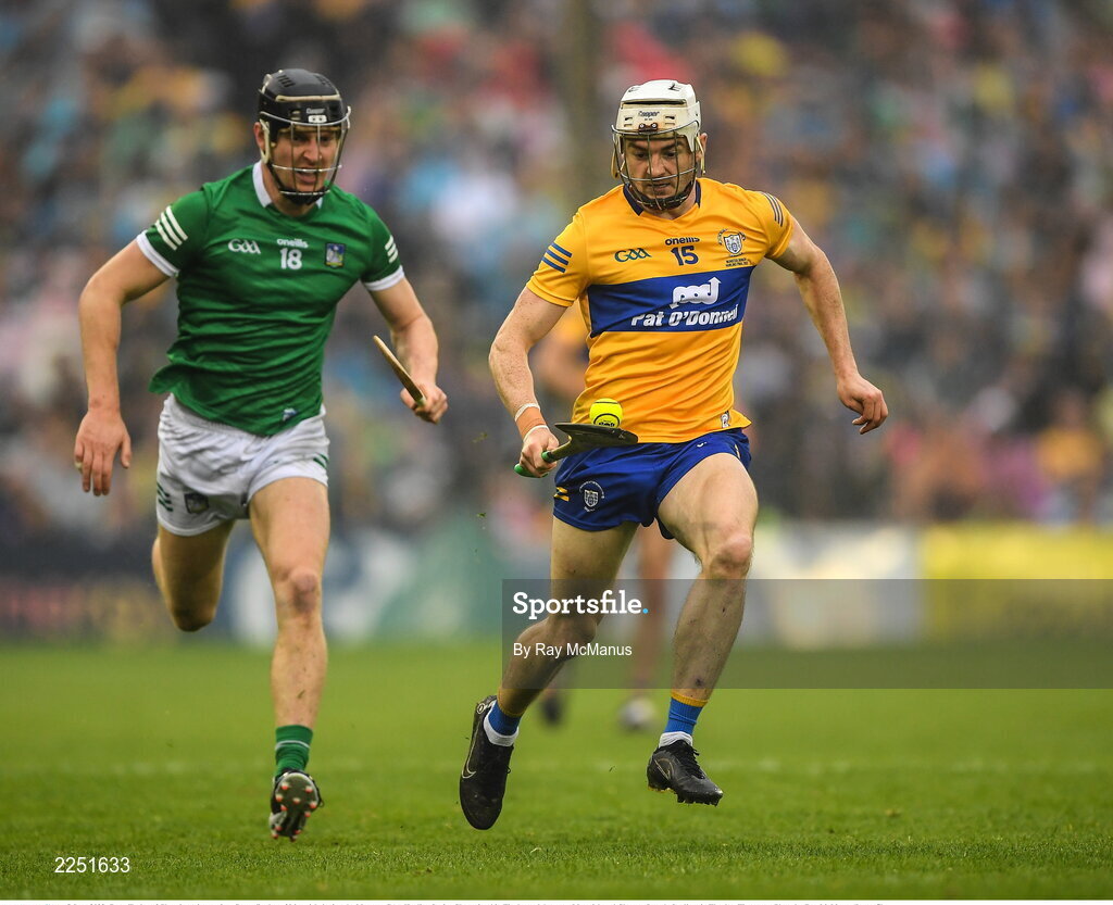 5 June 2022; Ryan Taylor of Clare in action against Conor Boylan of Limerick during the Munster GAA Hurling Senior Championship Final match between Limerick and Clare at Semple Stadium in Thurles, Tipperary. Photo by Ray McManus/Sportsfile