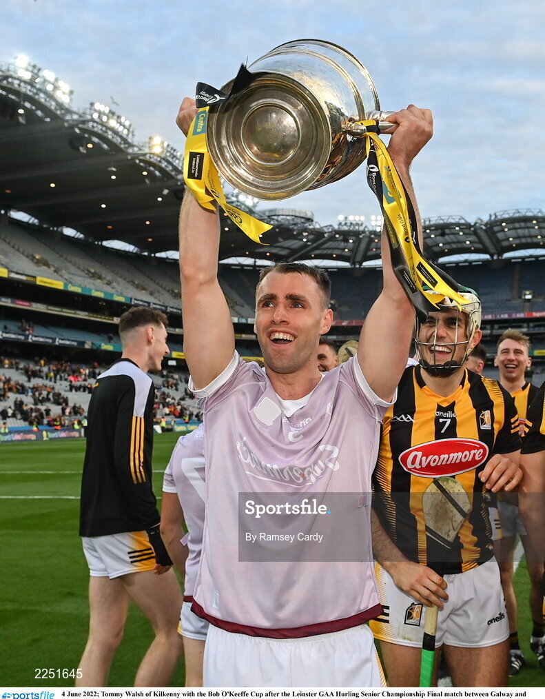 4 June 2022; Tommy Walsh of Kilkenny with the Bob O'Keeffe Cup after the Leinster GAA Hurling Senior Championship Final match between Galway and Kilkenny at Croke Park in Dublin. Photo by Ramsey Cardy/Sportsfile