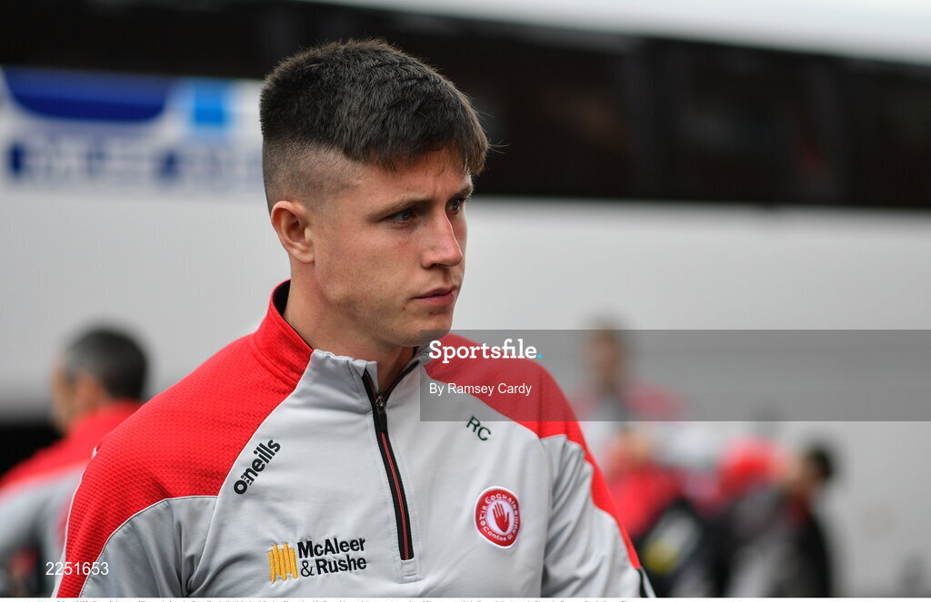 5 June 2022; Ryan Coleman of Tyrone before the GAA Football All-Ireland Senior Championship Round 1 match between Armagh and Tyrone at Athletic Grounds in Armagh. Photo by Ramsey Cardy/Sportsfile