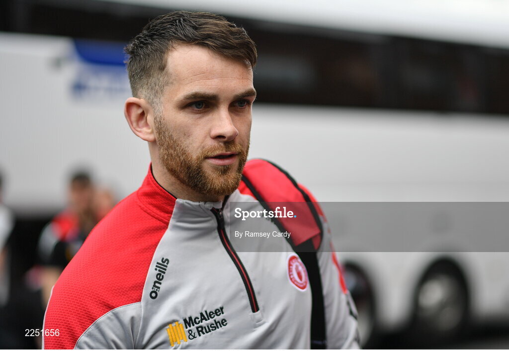 5 June 2022; Ronan McEntee of Tyrone before the GAA Football All-Ireland Senior Championship Round 1 match between Armagh and Tyrone at Athletic Grounds in Armagh. Photo by Ramsey Cardy/Sportsfile