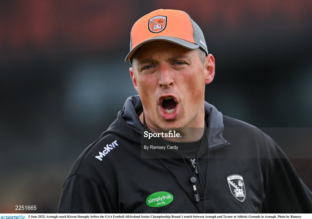 5 June 2022; Armagh coach Kieran Donaghy before the GAA Football All-Ireland Senior Championship Round 1 match between Armagh and Tyrone at Athletic Grounds in Armagh. Photo by Ramsey Cardy/Sportsfile