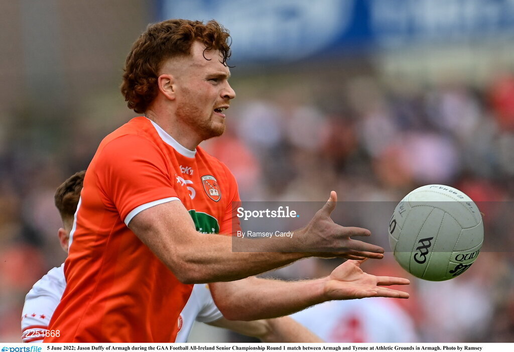 5 June 2022; Jason Duffy of Armagh during the GAA Football All-Ireland Senior Championship Round 1 match between Armagh and Tyrone at Athletic Grounds in Armagh. Photo by Ramsey Cardy/Sportsfile