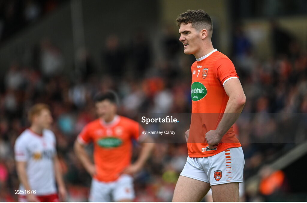 5 June 2022; Jarly Og Burns of Armagh during the GAA Football All-Ireland Senior Championship Round 1 match between Armagh and Tyrone at Athletic Grounds in Armagh. Photo by Ramsey Cardy/Sportsfile