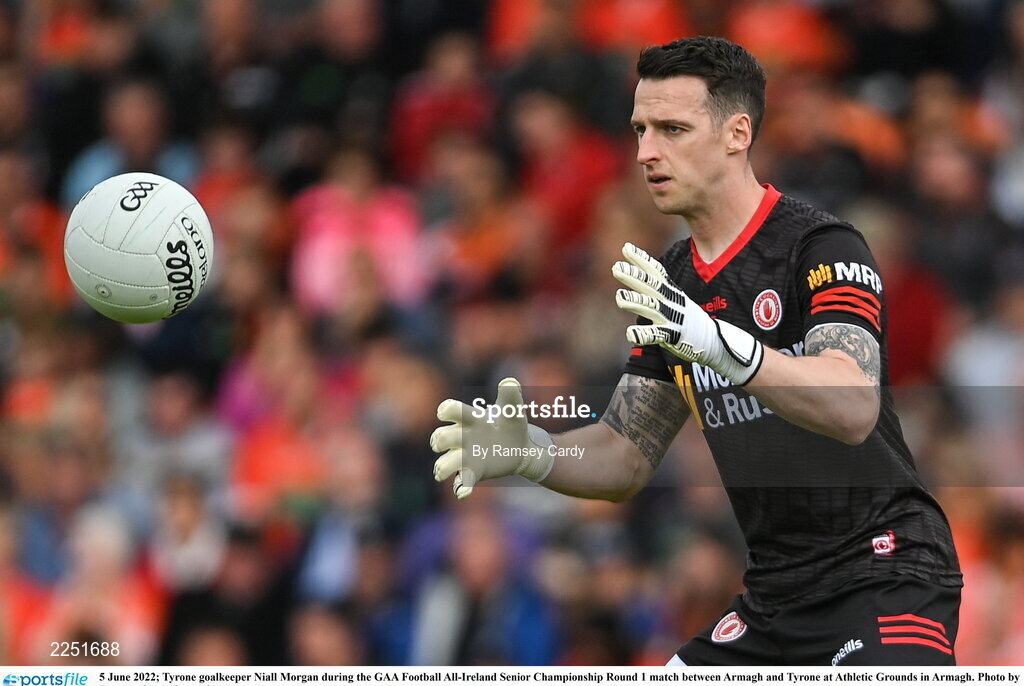 5 June 2022; Tyrone goalkeeper Niall Morgan during the GAA Football All-Ireland Senior Championship Round 1 match between Armagh and Tyrone at Athletic Grounds in Armagh. Photo by Ramsey Cardy/Sportsfile