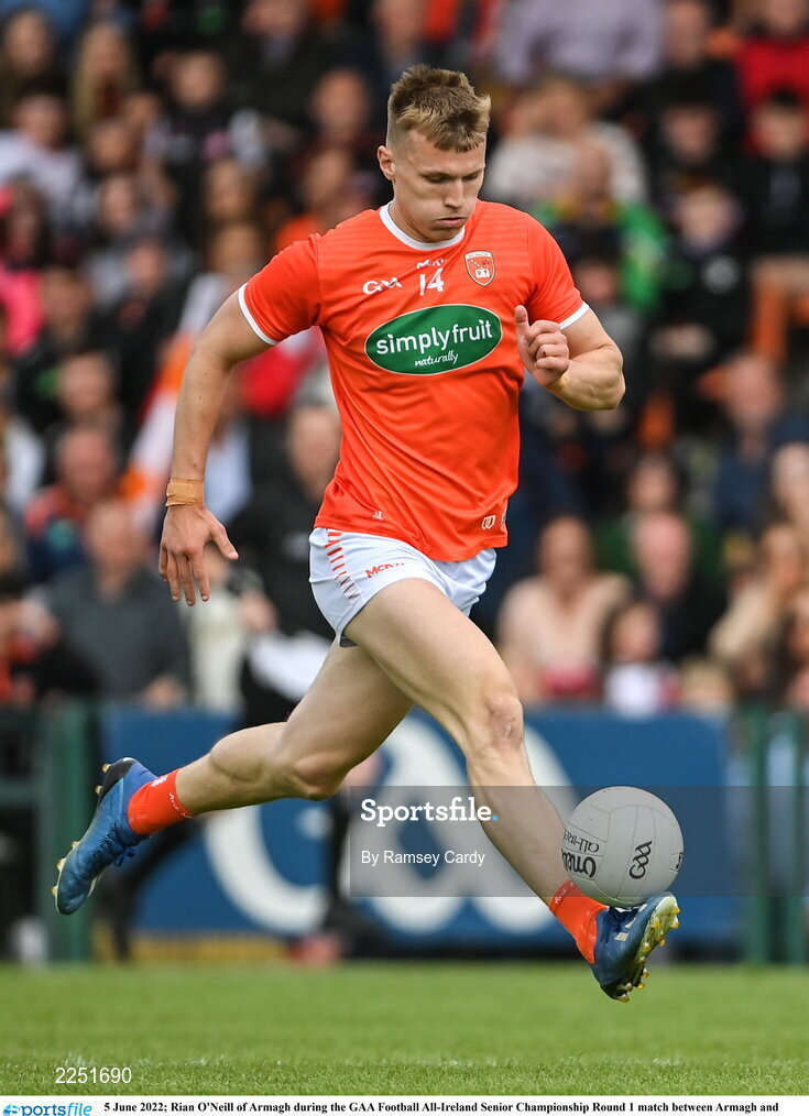 5 June 2022; Rian O'Neill of Armagh during the GAA Football All-Ireland Senior Championship Round 1 match between Armagh and Tyrone at Athletic Grounds in Armagh. Photo by Ramsey Cardy/Sportsfile