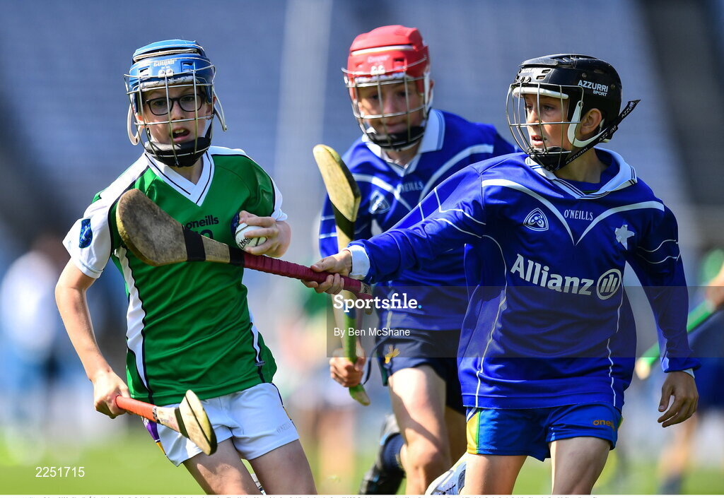 7 June 2022; Charlie Ó Lochlainn of Scoile Bride Ragnallach, Dublin, in action against Finn Kealy of Star of the Sea, Dublin, during the Corn JMOB final at the Allianz Cumann na mBunscol Finals in Croke Park, Dublin. Photo by Ben McShane/Sportsfile