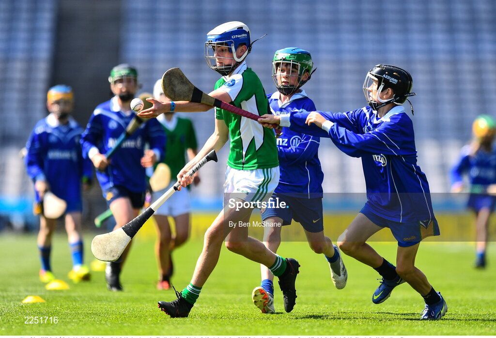 7 June 2022; Louis Ó Dochraigh of Scoile Bride Ragnallach, Dublin, in action against Finn Kealy of Star of the Sea, Dublin, during the Corn JMOB final at the Allianz Cumann na mBunscol Finals in Croke Park, Dublin. Photo by Ben McShane/Sportsfile