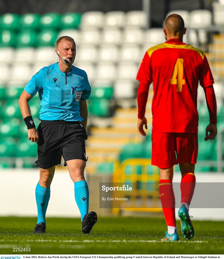 6 June 2022; Referee Jan Petrik during the UEFA European U21 Championship qualifying group F match between Republic of Ireland and Montenegro at Tallaght Stadium in Dublin. Photo by Eóin Noonan/Sportsfile