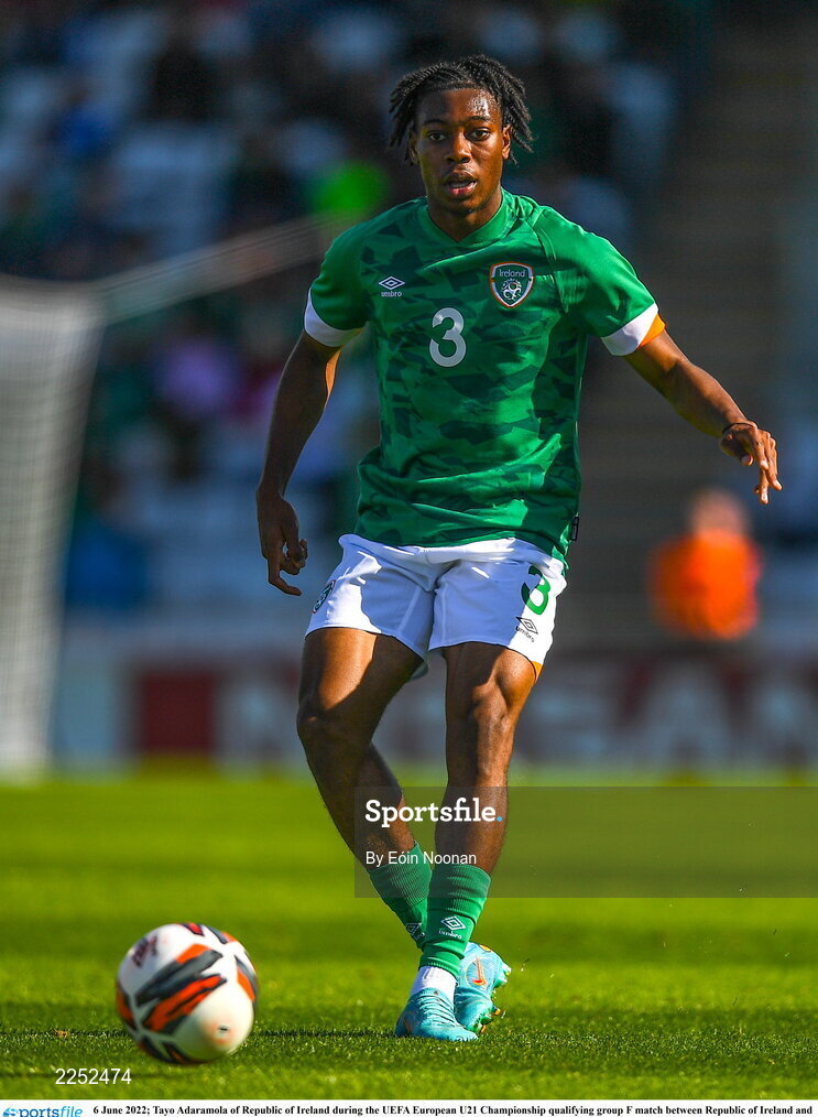 6 June 2022; Tayo Adaramola of Republic of Ireland during the UEFA European U21 Championship qualifying group F match between Republic of Ireland and Montenegro at Tallaght Stadium in Dublin. Photo by Eóin Noonan/Sportsfile
