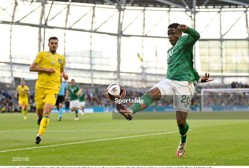 8 June 2022; Chiedozie Ogbene of Republic of Ireland during the UEFA Nations League B group 1 match between Republic of Ireland and Ukraine at Aviva Stadium in Dublin. Photo by Seb Daly/Sportsfile