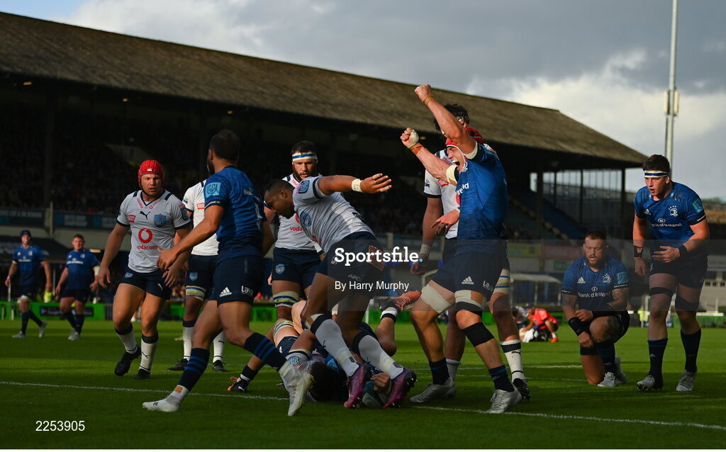 10 June 2022; Josh van der Flier of Leinster celebrates as Robbie Henshaw of Leinster scores his side's second try during the United Rugby Championship Semi-Final match between Leinster and Vodacom Bulls at the RDS Arena in Dublin. Photo by Harry Murphy/Sportsfile