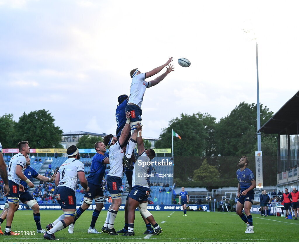 10 June 2022; Janko Swanepoel of Vodacom Bulls wins possession from a lineout during the United Rugby Championship Semi-Final match between Leinster and Vodacom Bulls at the RDS Arena in Dublin. Photo by David Fitzgerald/Sportsfile