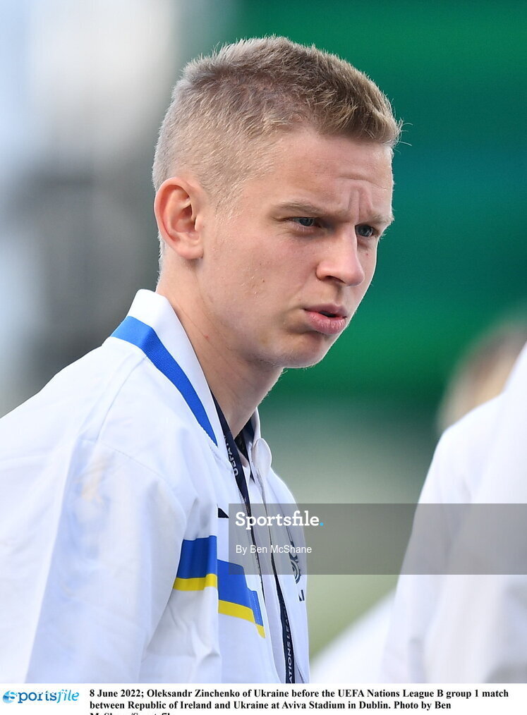 8 June 2022; Oleksandr Zinchenko of Ukraine before the UEFA Nations League B group 1 match between Republic of Ireland and Ukraine at Aviva Stadium in Dublin. Photo by Ben McShane/Sportsfile