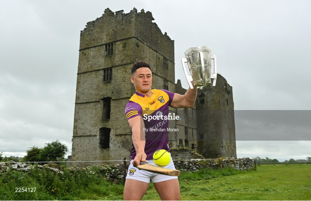 9 June 2022; Lee Chin of Wexford poses for a portrait with the Liam MacCarthy Cup at Loughmore Castle at the GAA Hurling All-Ireland Senior Championship Series national launch in Tipperary. Photo by Brendan Moran/Sportsfile