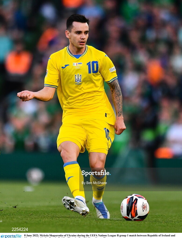 8 June 2022; Mykola Shaparenko of Ukraine during the UEFA Nations League B group 1 match between Republic of Ireland and Ukraine at Aviva Stadium in Dublin. Photo by Ben McShane/Sportsfile