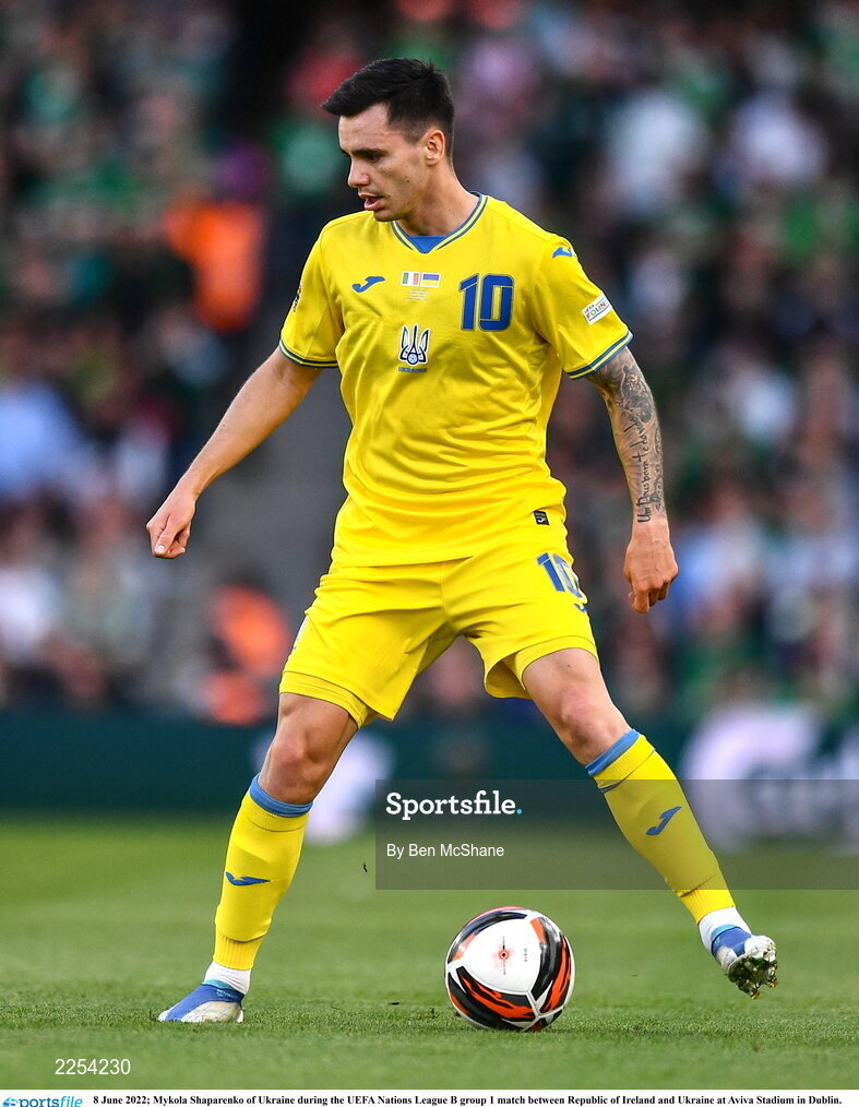 8 June 2022; Mykola Shaparenko of Ukraine during the UEFA Nations League B group 1 match between Republic of Ireland and Ukraine at Aviva Stadium in Dublin. Photo by Ben McShane/Sportsfile