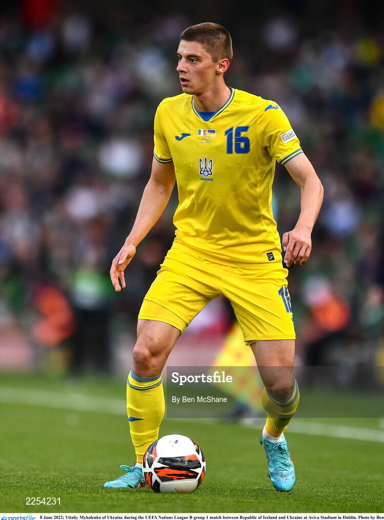 8 June 2022; Vitaliy Mykolenko of Ukraine during the UEFA Nations League B group 1 match between Republic of Ireland and Ukraine at Aviva Stadium in Dublin. Photo by Ben McShane/Sportsfile
