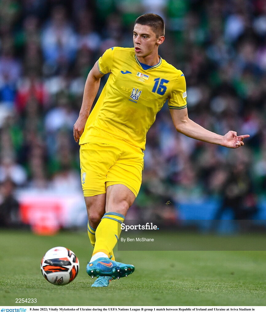 8 June 2022; Vitaliy Mykolenko of Ukraine during the UEFA Nations League B group 1 match between Republic of Ireland and Ukraine at Aviva Stadium in Dublin. Photo by Ben McShane/Sportsfile