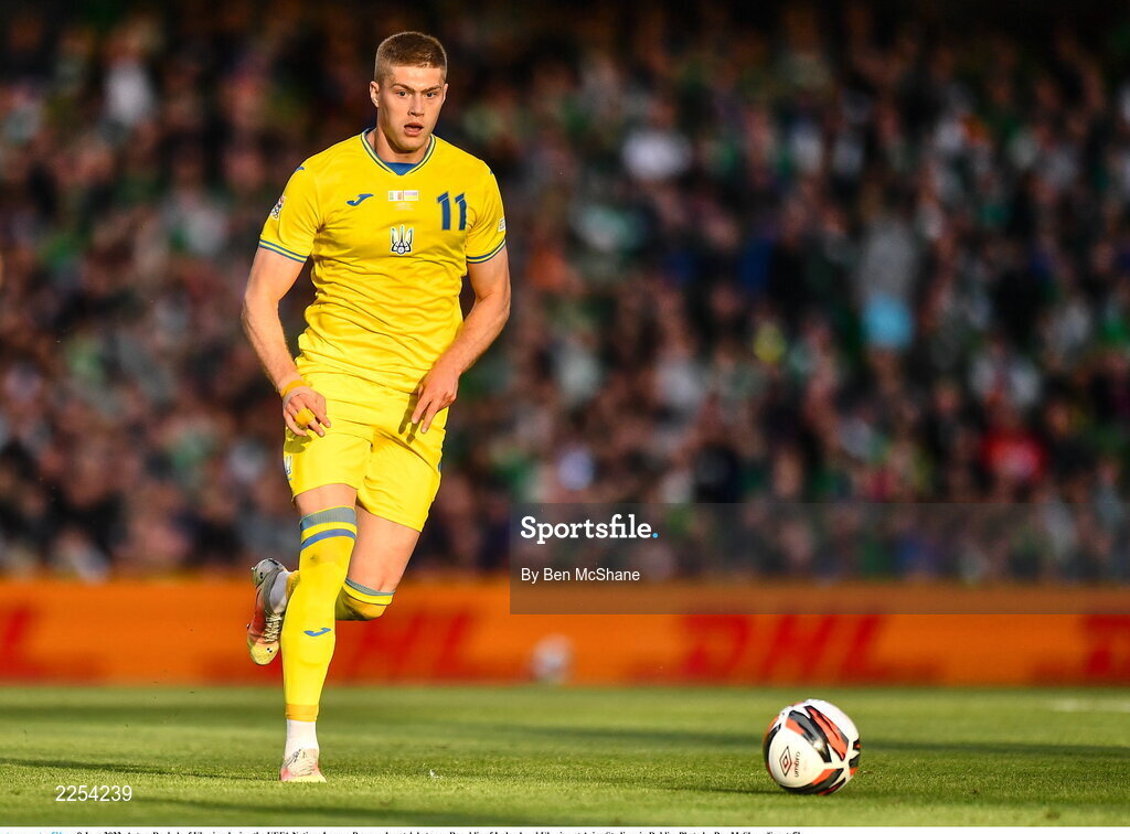 8 June 2022; Artem Dovbyk of Ukraine during the UEFA Nations League B group 1 match between Republic of Ireland and Ukraine at Aviva Stadium in Dublin. Photo by Ben McShane/Sportsfile