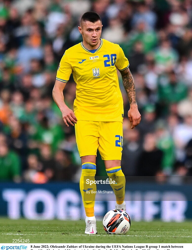 8 June 2022; Oleksandr Zubkov of Ukraine during the UEFA Nations League B group 1 match between Republic of Ireland and Ukraine at Aviva Stadium in Dublin. Photo by Ben McShane/Sportsfile