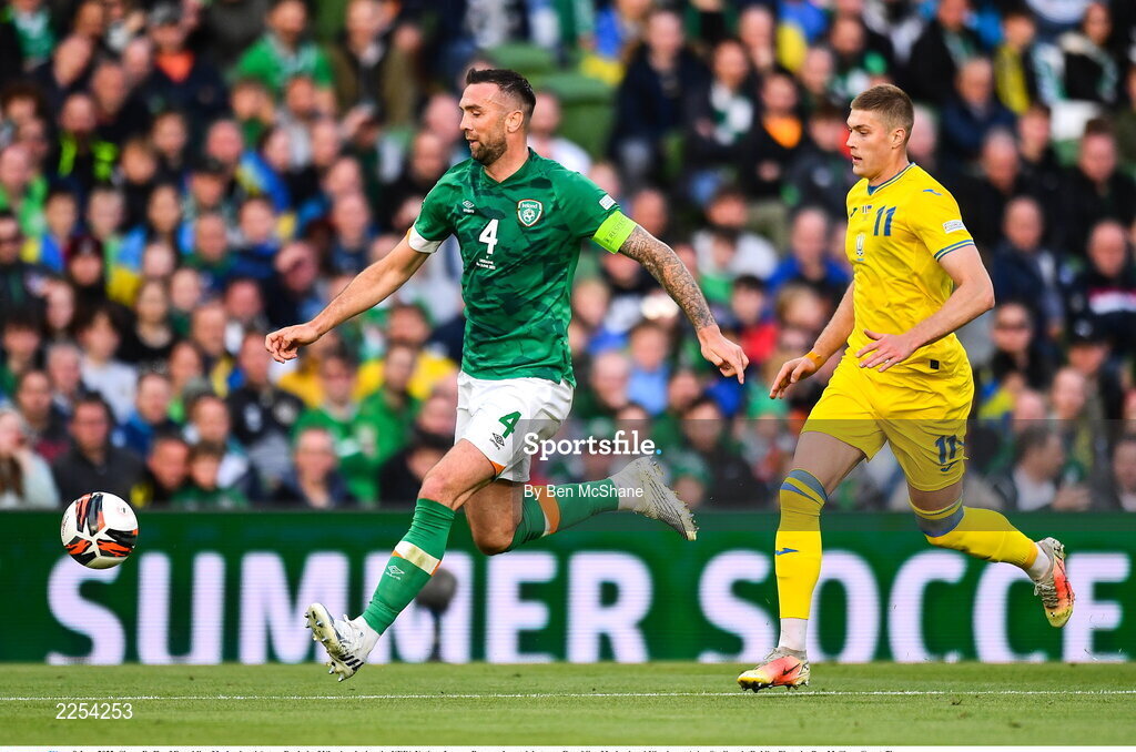 8 June 2022; Shane Duffy of Republic of Ireland and Artem Dovbyk of Ukraine during the UEFA Nations League B group 1 match between Republic of Ireland and Ukraine at Aviva Stadium in Dublin. Photo by Ben McShane/Sportsfile