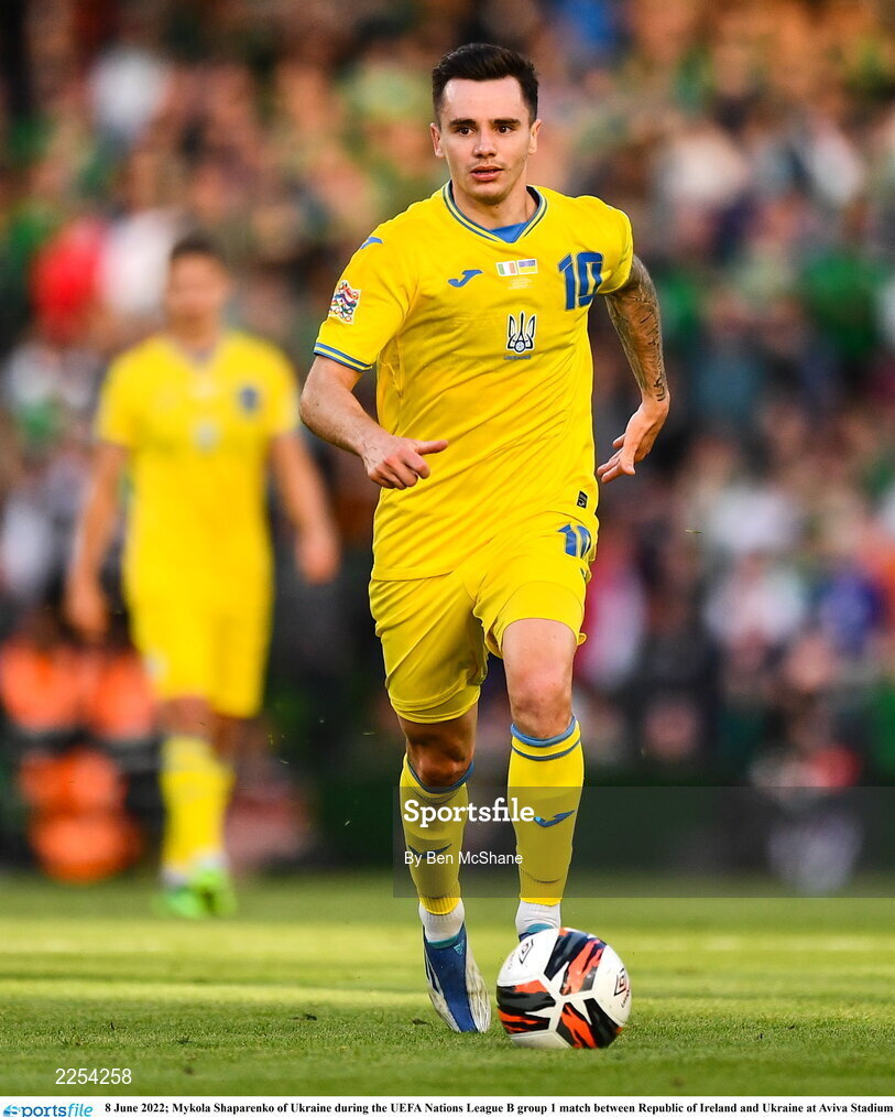 8 June 2022; Mykola Shaparenko of Ukraine during the UEFA Nations League B group 1 match between Republic of Ireland and Ukraine at Aviva Stadium in Dublin. Photo by Ben McShane/Sportsfile