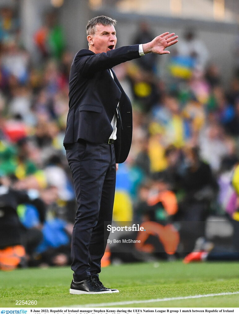 8 June 2022; Republic of Ireland manager Stephen Kenny during the UEFA Nations League B group 1 match between Republic of Ireland and Ukraine at Aviva Stadium in Dublin. Photo by Ben McShane/Sportsfile