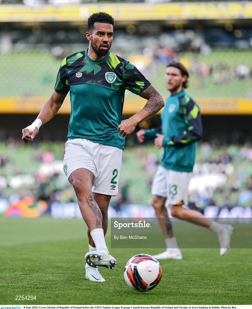 8 June 2022; Cyrus Christie of Republic of Ireland before the UEFA Nations League B group 1 match between Republic of Ireland and Ukraine at Aviva Stadium in Dublin. Photo by Ben McShane/Sportsfile