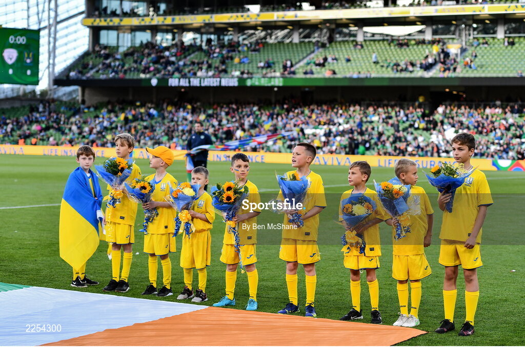 8 June 2022; Ukraine mascots before during the UEFA Nations League B group 1 match between Republic of Ireland and Ukraine at Aviva Stadium in Dublin. Photo by Ben McShane/Sportsfile