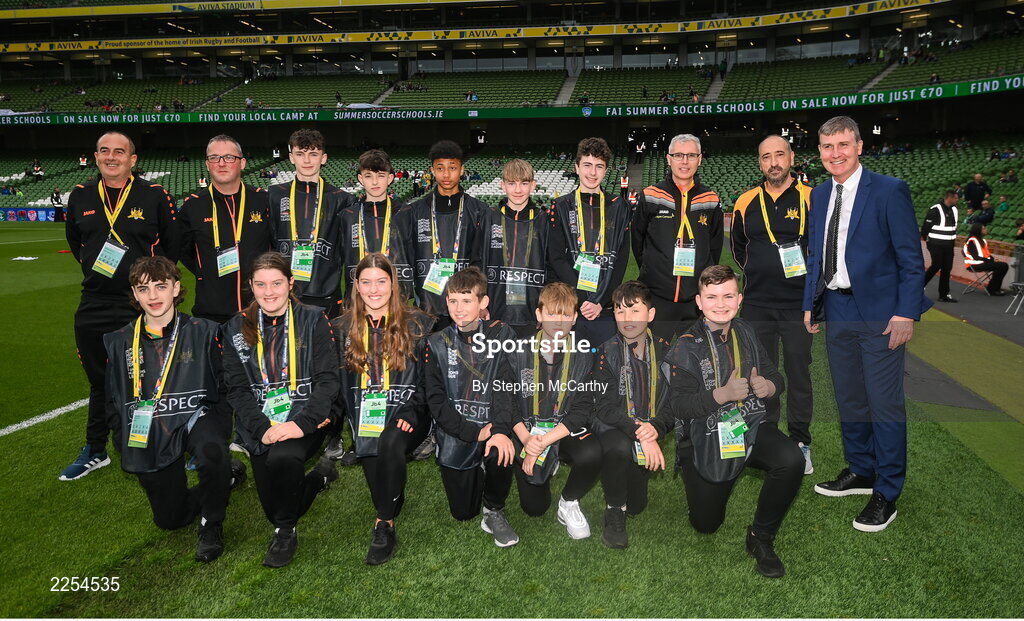 11 June 2022; Republic of Ireland manager Stephen Kenny with ballkids from Bally Rovers FC in Sligo before the UEFA Nations League B group 1 match between Republic of Ireland and Scotland at the Aviva Stadium in Dublin. Photo by Stephen McCarthy/Sportsfile
