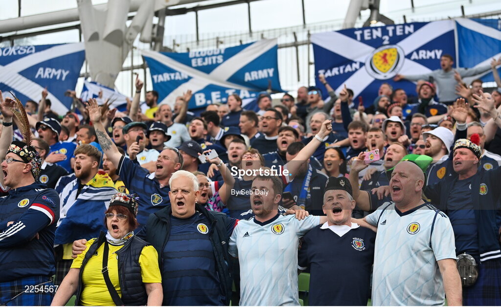 11 June 2022; Scotland supporters during the UEFA Nations League B group 1 match between Republic of Ireland and Scotland at the Aviva Stadium in Dublin. Photo by Seb Daly/Sportsfile