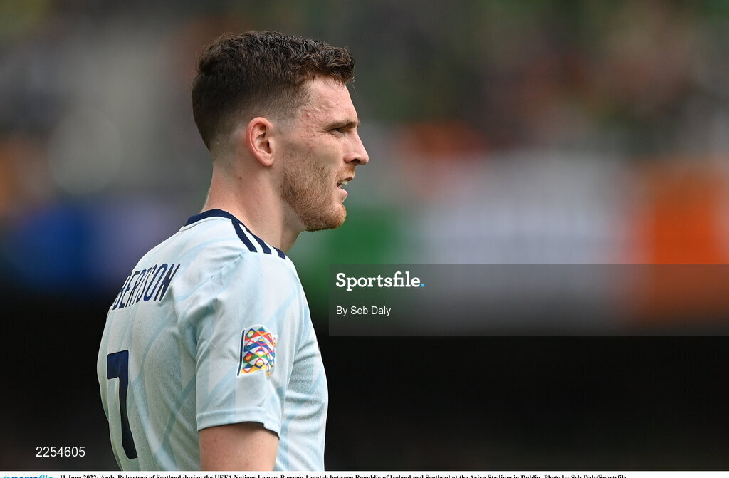 11 June 2022; Andy Robertson of Scotland during the UEFA Nations League B group 1 match between Republic of Ireland and Scotland at the Aviva Stadium in Dublin. Photo by Seb Daly/Sportsfile