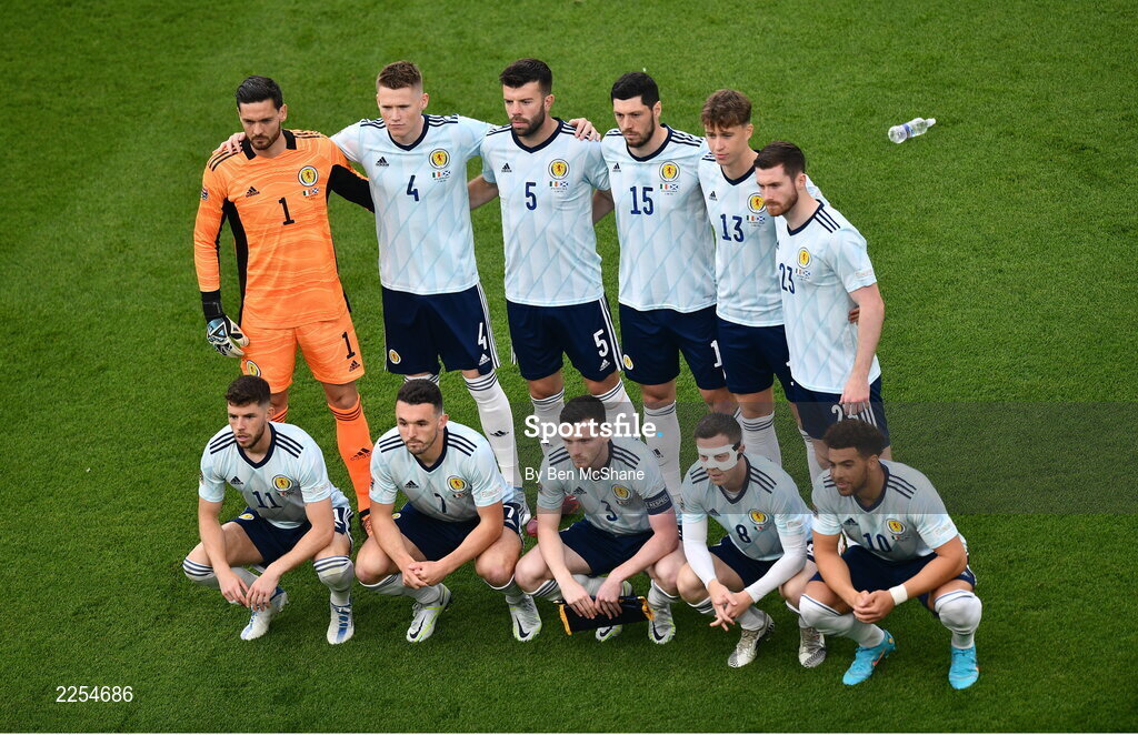 11 June 2022; The Scotland team before the UEFA Nations League B group 1 match between Republic of Ireland and Scotland at the Aviva Stadium in Dublin. Photo by Ben McShane/Sportsfile