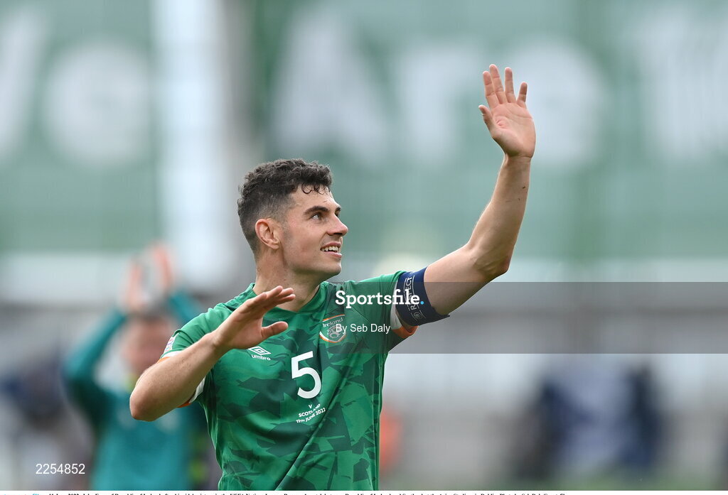11 June 2022; John Egan of Republic of Ireland after his side's victory in the UEFA Nations League B group 1 match between Republic of Ireland and Scotland at the Aviva Stadium in Dublin. Photo by Seb Daly/Sportsfile