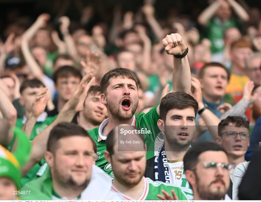 11 June 2022; Republic of Ireland supporters during the UEFA Nations League B group 1 match between Republic of Ireland and Scotland at the Aviva Stadium in Dublin. Photo by Seb Daly/Sportsfile