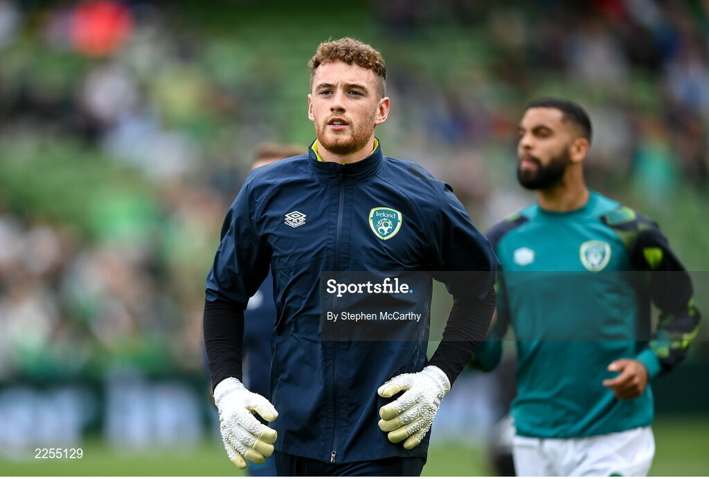 11 June 2022; Republic of Ireland goalkeeper Mark Travers before the UEFA Nations League B group 1 match between Republic of Ireland and Scotland at the Aviva Stadium in Dublin. Photo by Stephen McCarthy/Sportsfile