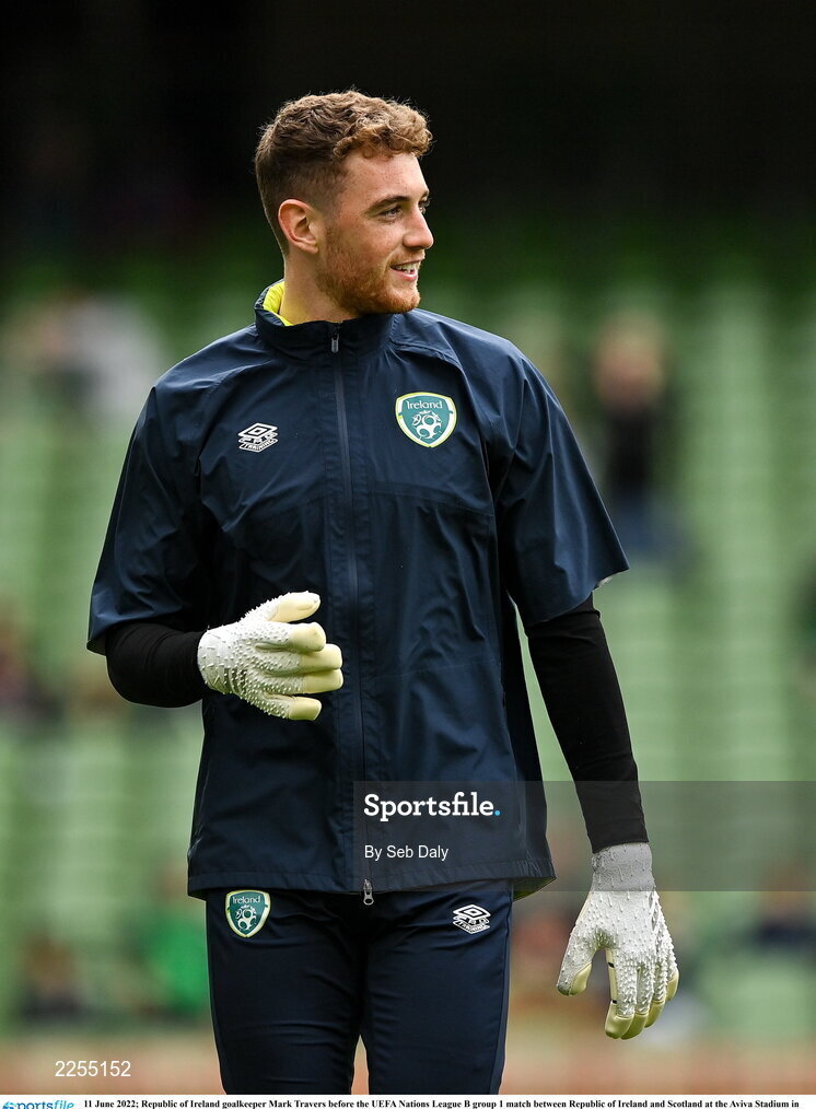 11 June 2022; Republic of Ireland goalkeeper Mark Travers before the UEFA Nations League B group 1 match between Republic of Ireland and Scotland at the Aviva Stadium in Dublin. Photo by Seb Daly/Sportsfile