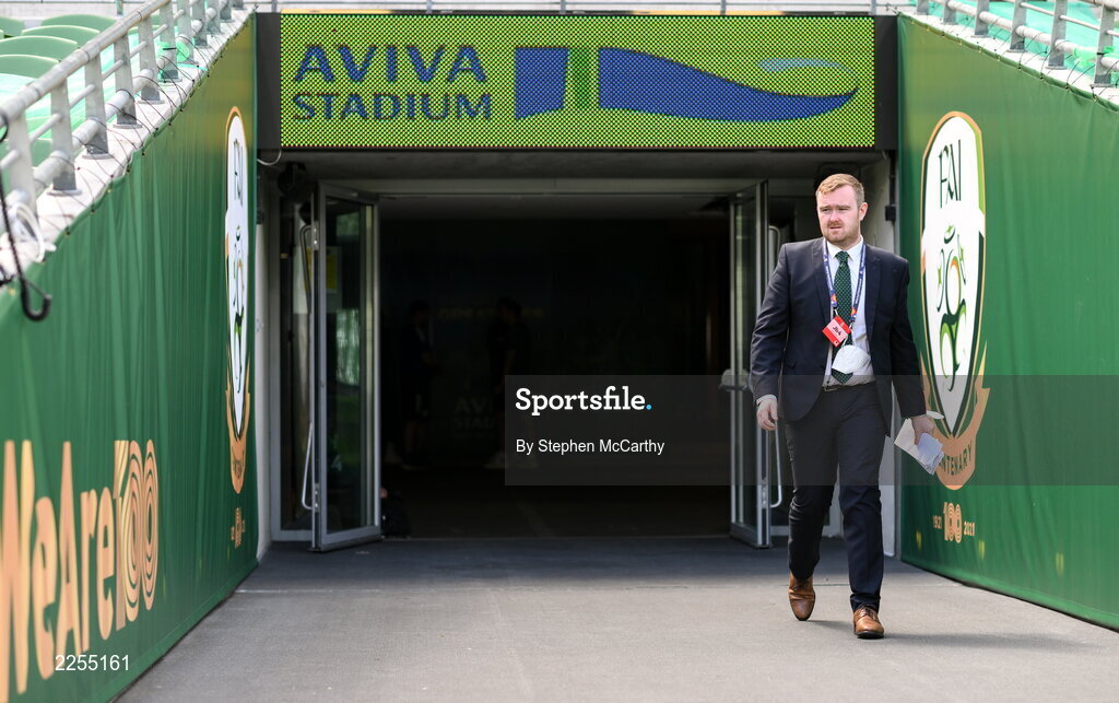 11 June 2022; Niall King, FAI international operations, before the UEFA Nations League B group 1 match between Republic of Ireland and Scotland at the Aviva Stadium in Dublin. Photo by Stephen McCarthy/Sportsfile