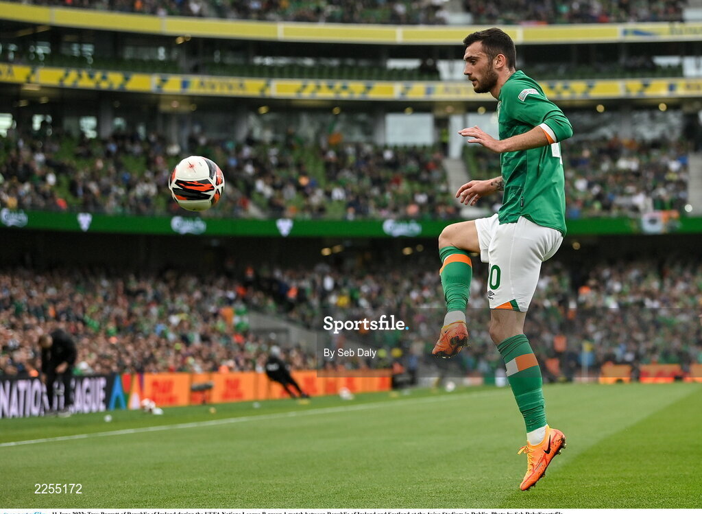 11 June 2022; Troy Parrott of Republic of Ireland during the UEFA Nations League B group 1 match between Republic of Ireland and Scotland at the Aviva Stadium in Dublin. Photo by Seb Daly/Sportsfile
