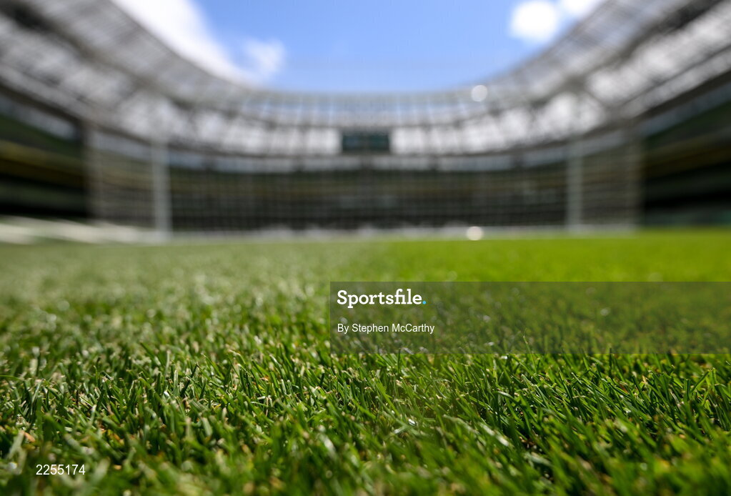 11 June 2022; A detailed view of the Aviva Stadium grass before the UEFA Nations League B group 1 match between Republic of Ireland and Scotland at the Aviva Stadium in Dublin. Photo by Stephen McCarthy/Sportsfile