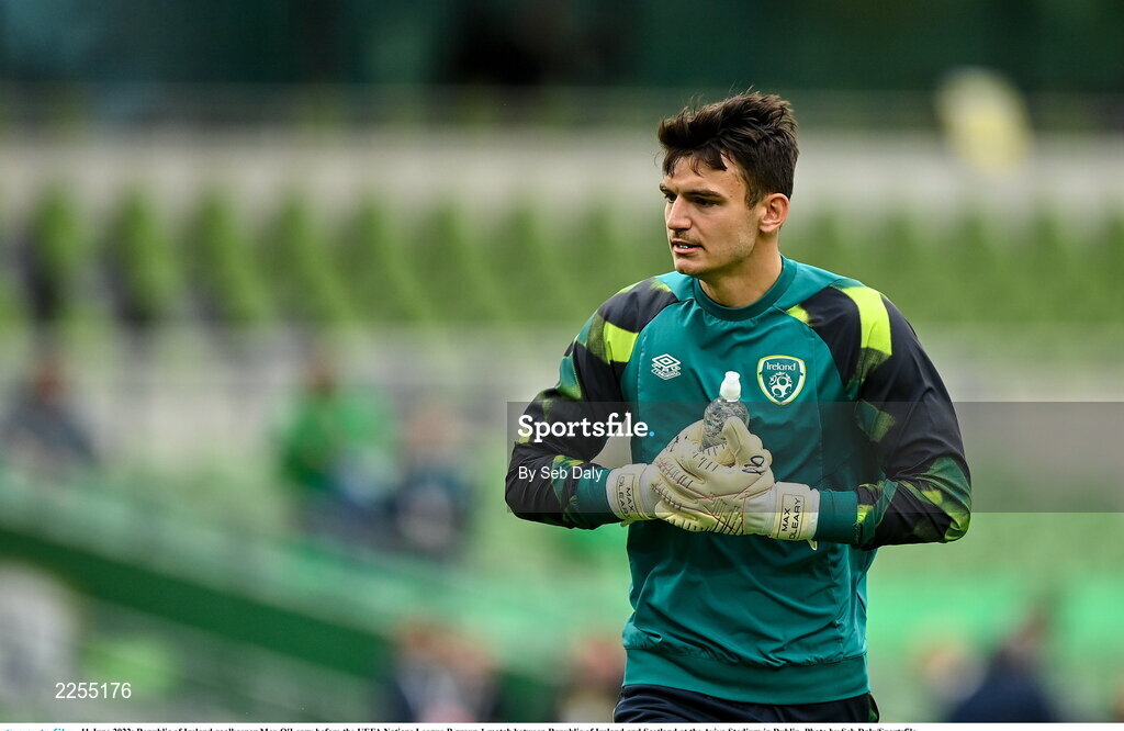 11 June 2022; Republic of Ireland goalkeeper Max O'Leary before the UEFA Nations League B group 1 match between Republic of Ireland and Scotland at the Aviva Stadium in Dublin. Photo by Seb Daly/Sportsfile