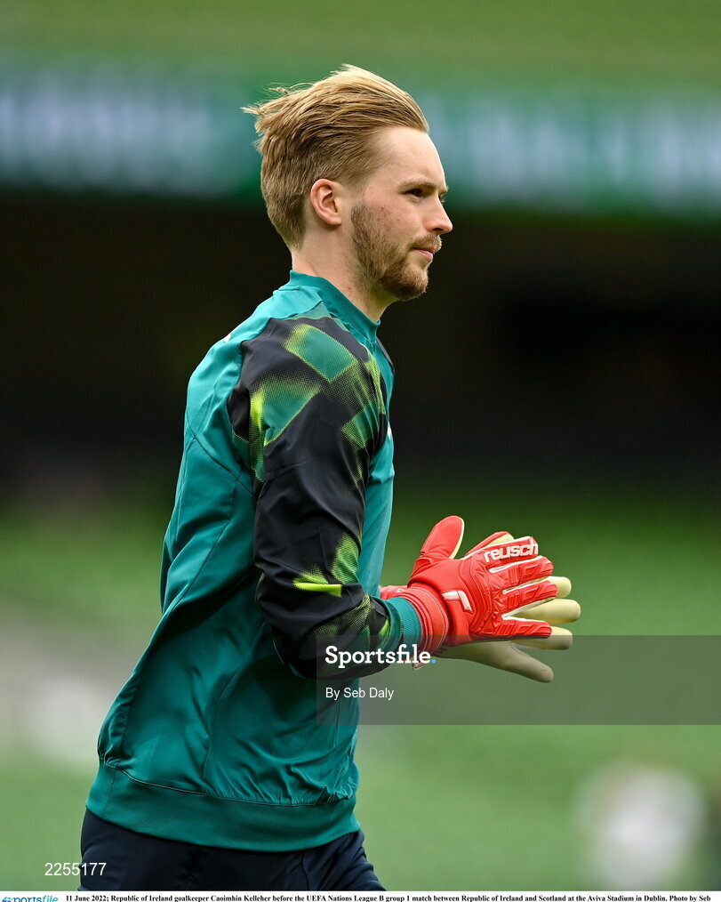 11 June 2022; Republic of Ireland goalkeeper Caoimhin Kelleher before the UEFA Nations League B group 1 match between Republic of Ireland and Scotland at the Aviva Stadium in Dublin. Photo by Seb Daly/Sportsfile